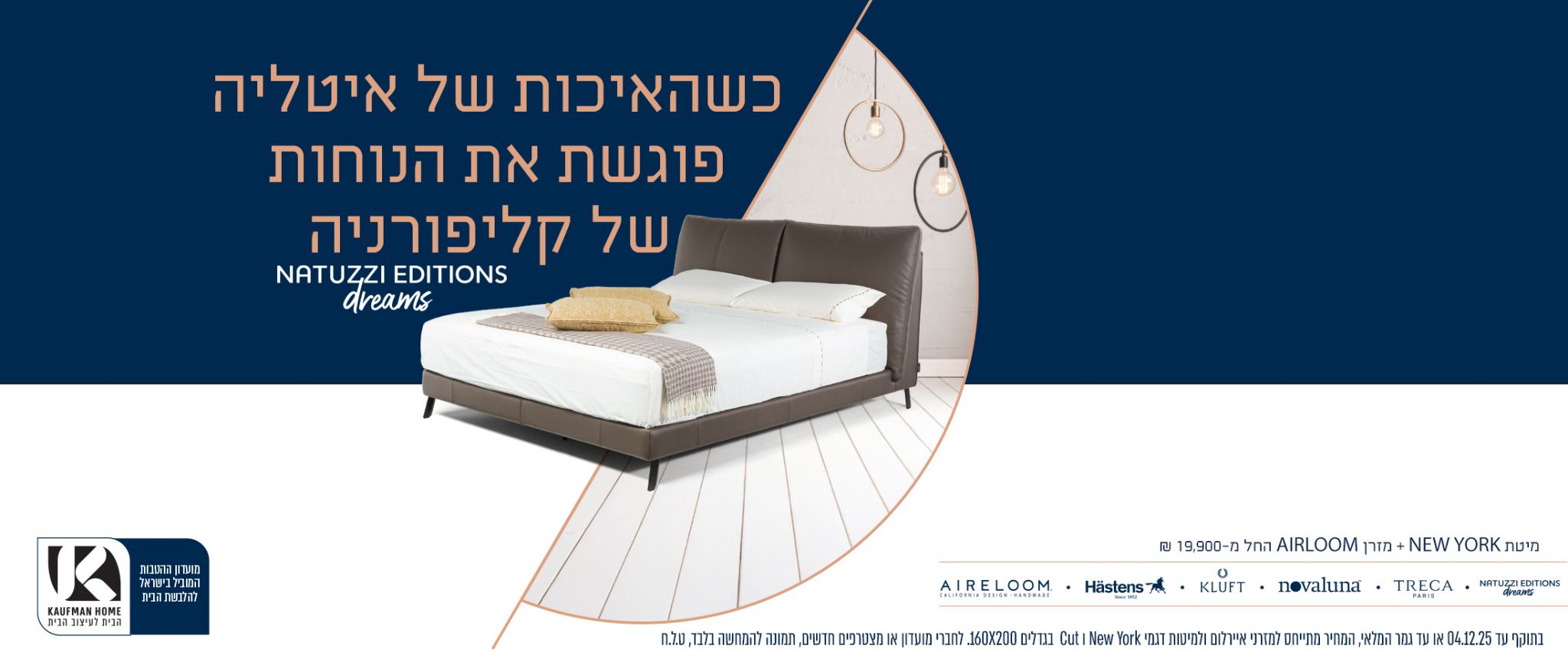 our brandsהמותגים המובילים BRANDSמותגים Mattressesמזרנים pillowsכריות Bed Linenמצעיםsince 1852art for the bedroomcalifornia design handmadecrafted by mastersour brandsהמותגים המובילים SLEEP SYSTENהמיטות הטובות בעולםBRANDSהמותגים המובילים בעולםOUR STORYהמקום בו חלומות מתגשמיםACCESSORIESהפריטים שישדרגו את חווית השינה שלךכל המותגים המובילים במקום אחד? READY TO FALL ASLEEPלתיאום פגישות אישיותשלחאני מאשר/ת קבלת חומרים פרסומייםאני מאשר.ת לקבל מהמרכז הבריאותי ד.ע. בע"מ, מבעדיאל רהיטים בע"מ, מבעדיאל מערכות שינה בע"מ ומיוניק סוכנויות בע"מ, מידע על הטבות, דברי פרסומת, לרבות מבצעים והנחות באמצעים טכנולוגים (לרבות, דוא"ל, הודעות SMS, הודעות וואטסאפ, מערכת חיוג אוטומטי, ועוד), בהתאם למדיניות הפרטיות:https://www.kaufman-group.co.il/privacyנסה שוב